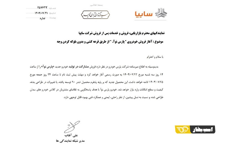 به گزارش تیتر یک به نقل از اسب بخار، شرکت پارس خودرو شرایط فروش رسمی پارس نوآ که به نوعی تندر ۹۰ یا ال ۹۰ داخلی سازی شده است را به صورت قرعه کشی و بدون نیاز به بلوکه کردن پول اعلام کرد.